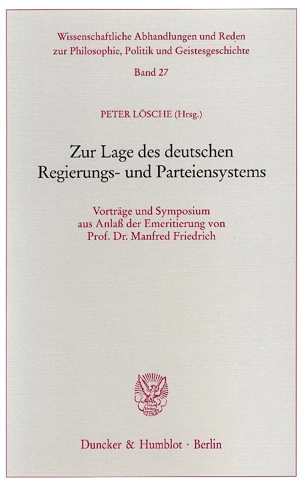 Prof. Dr. Manfred Friedrich hat über mehrere Jahrzehnte an der Georg-August Universität Göttingen gewirkt. Seine Werke umfassen die ganze Breite der Politikwissenschaft. Sie reichen von der politischen Ideengeschichte über Probleme des Parlamentarismus, der Lä...