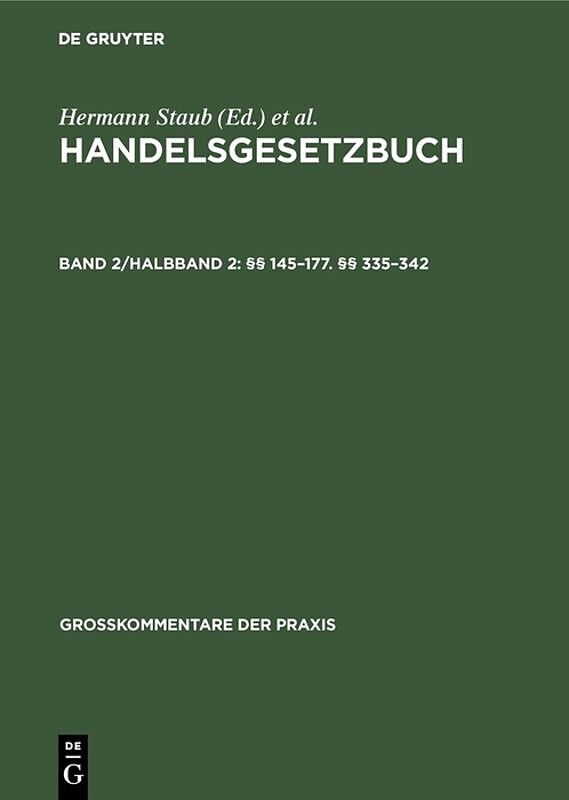 Frontmatter -- Inhaltsverzeichnis des zweiten Bandes, 2. Halbband (§§ 145-342) -- Zweites Buch. Handelsgesellschaften und stille Gesellschaft -- Erster Abschnitt: Offene Handelsgesellschaft -- Zweiter Abschnitt: Kommanditgesellschaft -- Dritter Abschnitt: Akti...