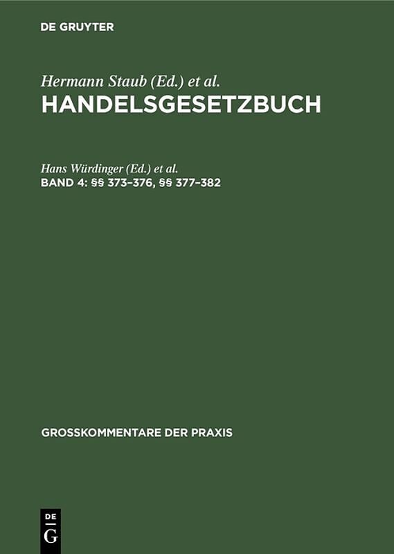 Frontmatter -- Inhaltsverzeichnis des vierten Bandes (§§ 373382) -- Vorwort zum vierten Band -- Zweiter Abschnitt. Handelskauf -- Vorbem. vor §§ 373/374: Inhaltsübersicht -- §§ 373/374 Der Annahmeverzug des Käufers: Befugnisse des Verkäufers im Annahmeverzug d...