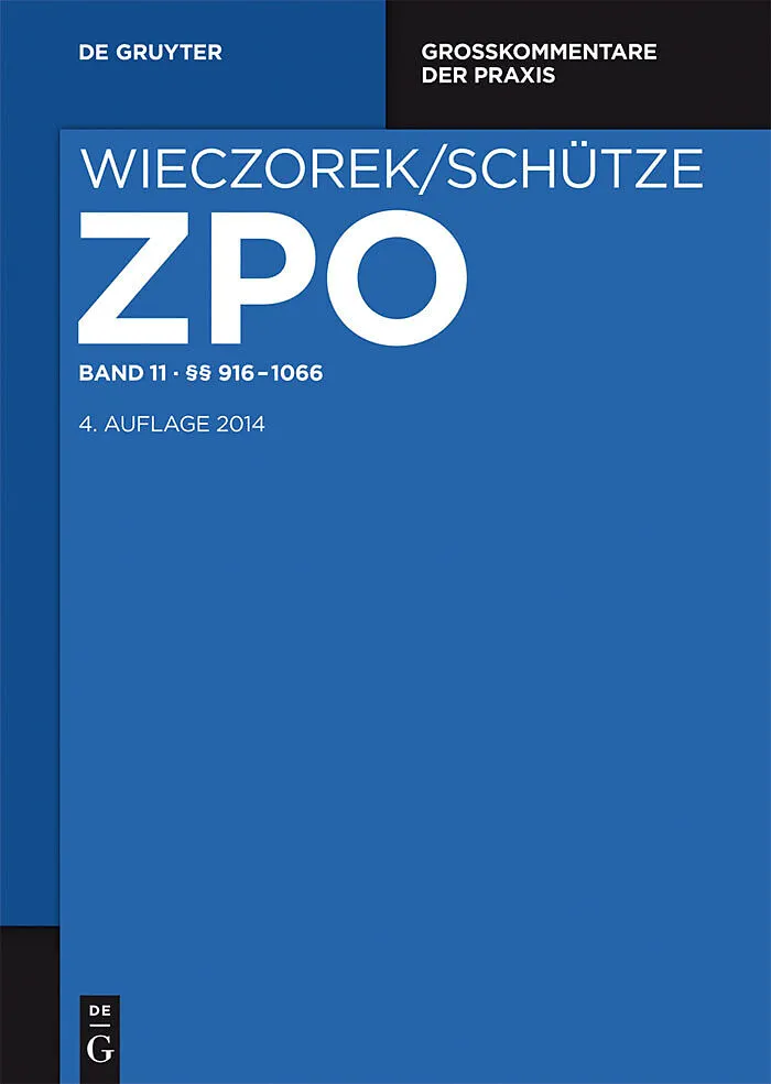 Now in its fourth edition, the Wieczorek/Schütze legal commentary is a virtual institution in the field of civil procedure. This fourteenvolume guide once again sets the standard for legal reference works. Based on solid legal scholarship, it comprehensively ...