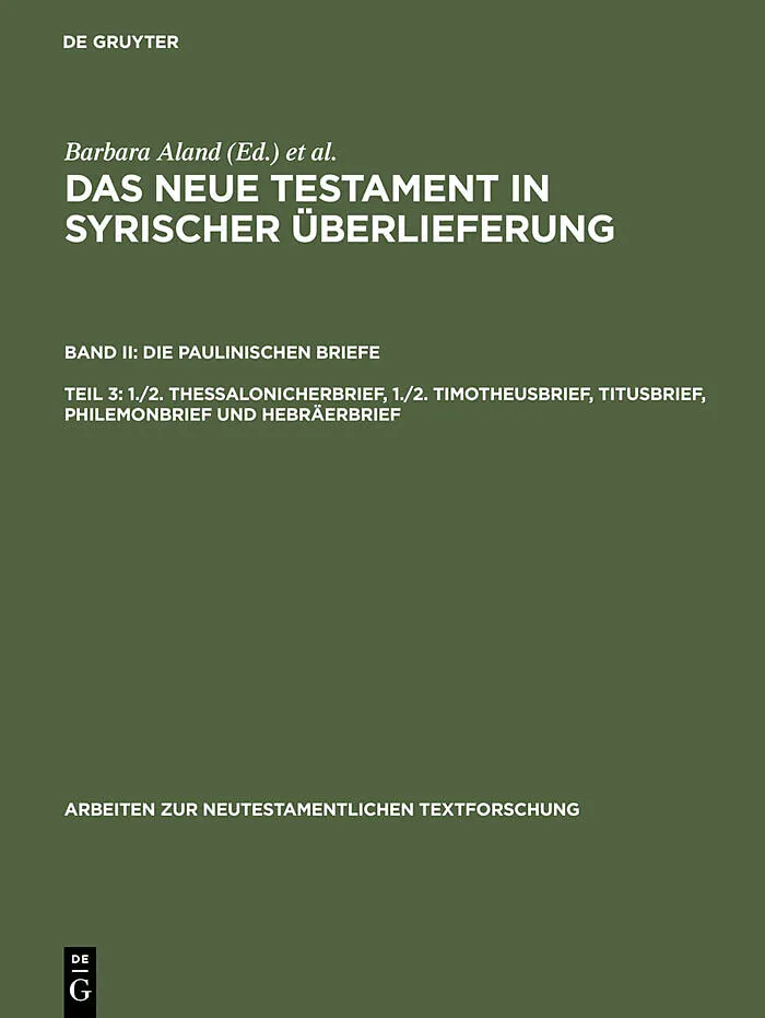 An edition of all Syrian translations of the New Testament, presented synoptically and chronologically. The translations are edited here for the first time. The citation material is assembled, reflecting lost translations (Vetus Syra, Philoxenia). In the intr...
