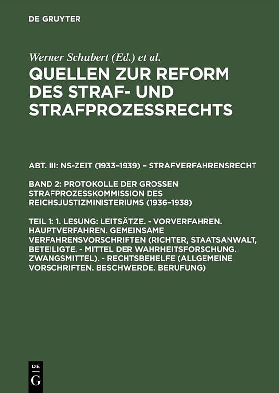 Dieser Titel, "1. Lesung: Leitsätze. - Vorverfahren. Hauptverfahren. Gemeinsame Verfahrensvorschriften (Richter, Staatsanwalt, Beteiligte. - Mittel der Wahrheitsforschung. Zwangsmittel). - Rechtsbehelfe (Allgemeine Vorschriften. Beschwerde. Berufung)", ist ein...