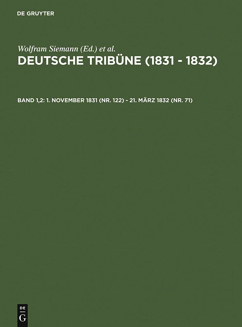 Keine ausführliche Beschreibung für "1. November 1831 (Nr. 122) - 21. März 1832 (Nr. 71)" verfügbar. Inhalt i-iv -- Inhalt -- Vorwort -- Anmerkungen zur Edition -- Anmerkungen zur Paginierung -- In der Deutschen Tribüne verwendete Abkürzungen -- Deutsche Trib...