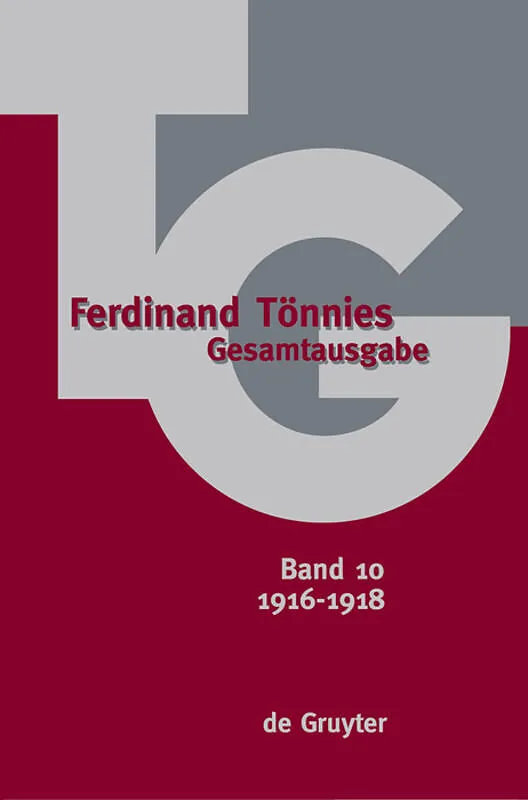 The published life's work of the founding father of German sociology is now being made available for international research and teaching with a new complete edition. Volume 10 is the sixth of a projected 24-volume edition. The predominant theme in Tönnies' wr...