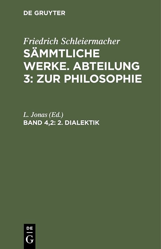 Dieser Titel, "2. Dialektik", ist eine wissenschaftliche Publikation, erschienen bei De Gruyter Brill. Ausführliche Beschreibung, Inhaltsverzeichnis und weitere Angaben finden Sie auf der Verlagswebsite: https://www.degruyterbrill.com/isbn/9783111407869 Klappe...