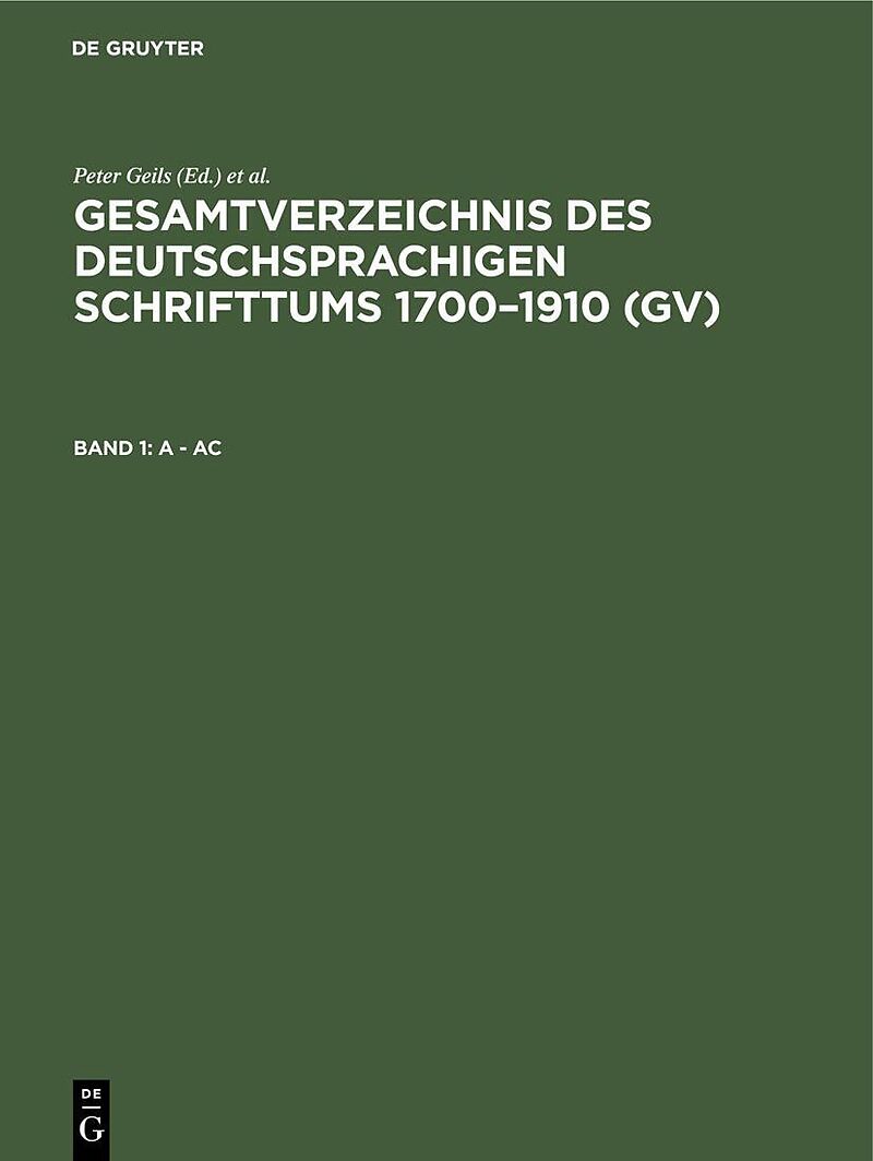 Keine ausführliche Beschreibung für "A - Ac" verfügbar. Zusammenfassung Frontmatter -- Geleitwort -- Inhaltsübersicht -- Vorwort -- Anleitung für den Benutzer -- Quellenverzeichnis -- Abkürzungsverzeichnis -- Hauptteil. Part 1 -- Hauptteil. Part 2...