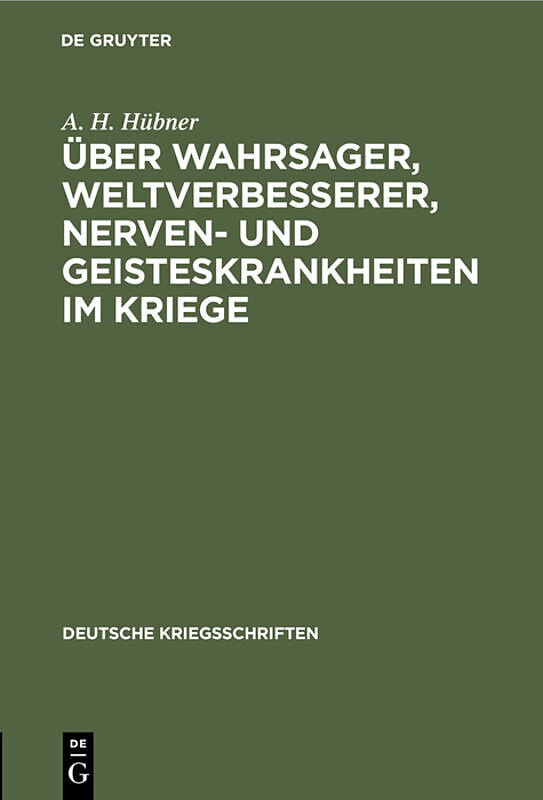 Dieser Titel, "Über Wahrsager, Weltverbesserer, Nerven- und Geisteskrankheiten im Kriege", ist eine wissenschaftliche Publikation, erschienen bei De Gruyter Brill. Ausführliche Beschreibung, Inhaltsverzeichnis und weitere Angaben finden Sie auf der Verlagswebs...