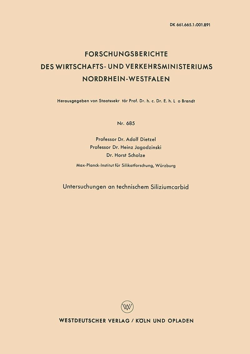 Inhalt Gliederung.- Problemstellung.- 1. Thermodynamische Berechnung.- 2. Synthese von Siliziumcarbid.- 3. Strukturuntersuchungen.- a) Röntgenographische Untersuchungen.- b) Ultrarot-spektroskopische Untersuchungen.- 4. Untersuchungen am technischen SiC ohne B...