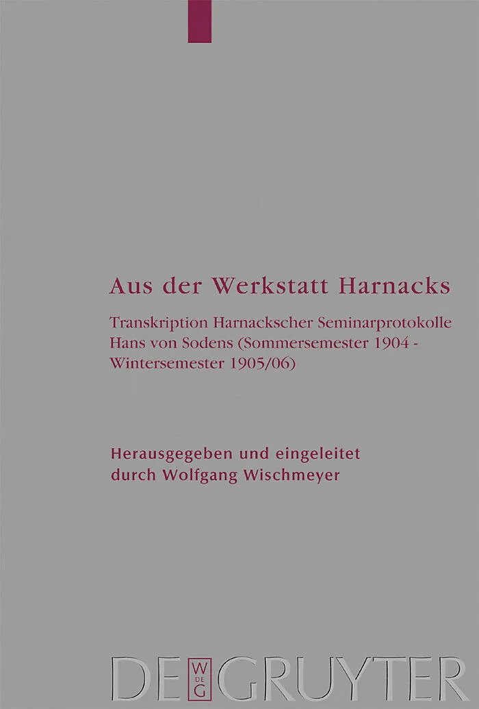Only recently three notebooks by Hans von Soden (1881-1945) were found in which he recorded four seminars Adolf Harnack taught between the summer of 1904 and early 1906. The seminars were devoted to the following subjects: Justin's Apologies, Gnosticism, Augu...