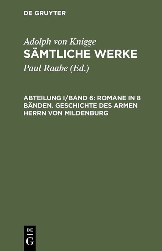 Dieser Titel, "Romane in 8 Bänden. Geschichte des armen Herrn von Mildenburg", ist eine wissenschaftliche Publikation, erschienen bei De Gruyter Brill. Ausführliche Beschreibung, Inhaltsverzeichnis und weitere Angaben finden Sie auf der Verlagswebsite: https:/...