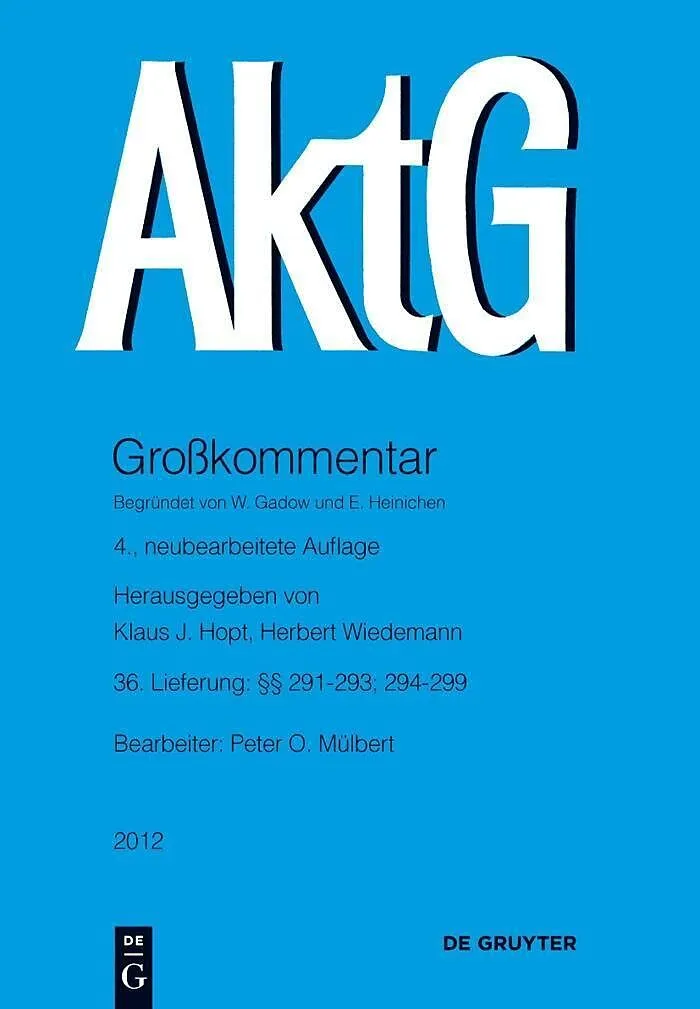 This highly respected commentary on German stock corporation law (AktG) is unparalleled in its comprehensiveness. Intellectually rigorous yet practically written, the fourth edition features top-notch and renowned editors and authors from the worlds of academi...