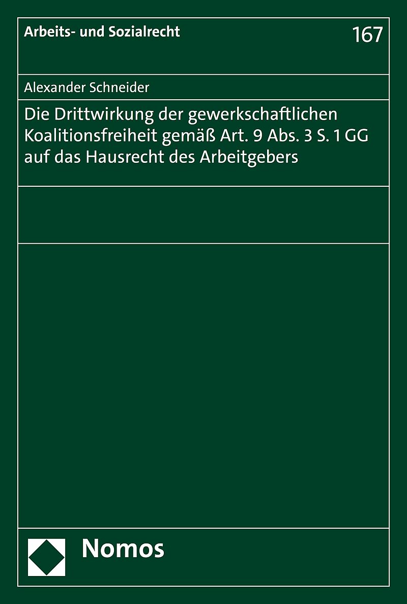 Das Werk untersucht mit der Drittwirkung der gewerkschaftlichen Koalitionsfreiheit gemäß Art. 9 Abs. 3 S. 1 GG auf das Hausrecht des Arbeitgebers ein potentiell besonders konfliktbeladenes Verhältnis der Sozialpartner, das in der zukünftigen Rechtspraxis noch ...