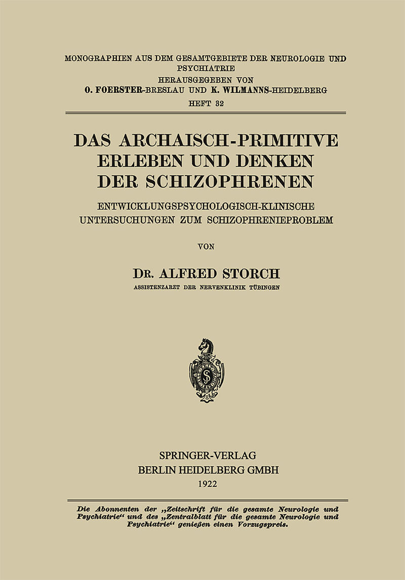 Das Archaisch-Primitive Erleben und Denken der Schizophrenen