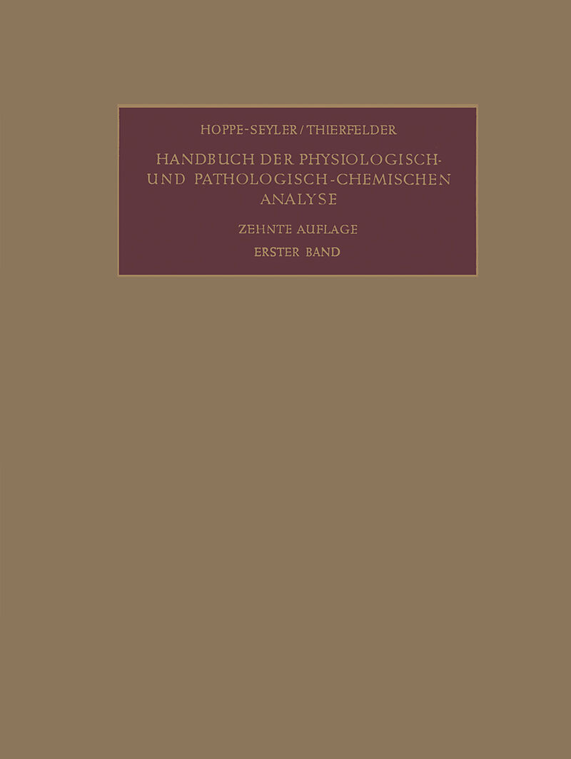 zur zehnten Auflage. Analyse und quantitative Messung sind die Grundlagen einer jeden experimentellen Forschung. Die Untersuchung von biologischem Material bietet dabei besondere Schwierig keiten, da die zu erfassenden Substanzen in einem ungemein kompliziert ...zur zehnten Auflage. Analyse und quantitative Messung sind die Grundlagen einer jeden experimentellen Forschung. Die Untersuchung von biologischem Material bietet dabei besondere Schwierig keiten, da die zu erfassenden Substanzen in einem ungemein kompliziert zusammen gesetzten Milieu und zumeist nur in sehr geringfügigen Konzentrationen vorliegen. Da durch ergeben sich Fehlermöglichkeiten in großer Zahl und Anlaß zu mancherlei Störungen. So ist die chemische Analyse von biologischem Material immer ein Sondergebiet geblieben, dessen Bearbeitung Spezialkenntnisse voraussetzt. Die präparative Darstellung der Bau steine des menschlichen und des tierischen Organismus erfordert die Trennung zahlreicher Stoffe, die in ihren physikalischen und chemischen Eigenschaften einander sehr ähnlich sind; sie setzt daher die Beherrschung wirksamer Trennverfahren voraus. Die geringen Konzentrationen, in der viele biologisch wichtige Stoffe in den Organismen vorkommen, macht die Ausarbeitung hinreichend empfindlicher und spezifischer Bestimmungsver fahren nötig. So hat die biochemische Analytik unseren Besitz an Mikroverfahren außer ordentlich bereichert. Im Jahre 1858, also vor fast 100 Jahren, hat HOPPE-SEYLER dieses Handbuch erstmalig herausgegeben. Seitdem war es für Generationen von Biochemikern, Ärzten und Biologen unentbehrliches Handwerkszeug ihrer Arbeit, denn hier fanden sie alle Angaben über Gewinnung und Analyse der im tierischen Organismus unter normalen und pathologischen Verhältnissen vorkommenden chemischen Substanzen zusammengefaßt. So erwies sich HOPPE-SEYLERS Handbuch bald als ein Standardwerk der Weltliteratur, so daß bisher insgesamt in ziemlich regelmäßigen Abständen 9 Auflagen, die letzte im Jahre 1924, erscheinen konnten. Schon 1893war der Stoff so angewachsen, daß die 6. Auflage von HOPPE-SEYLER und THIERFELDER gemeinsam bearbeitet werden mußte. Die 9.