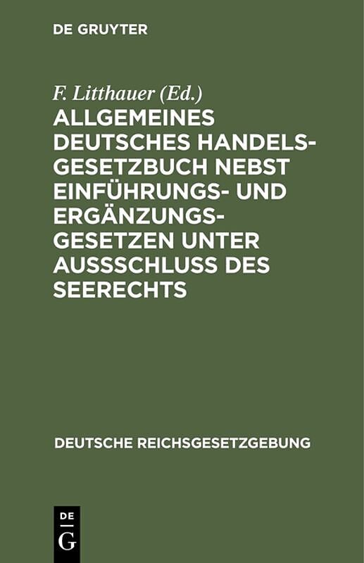 Dieser Titel, "Allgemeines Deutsches Handelsgesetzbuch nebst Einführungs- und Ergänzungsgesetzen unter Aussschluß des Seerechts", ist eine wissenschaftliche Publikation, erschienen bei De Gruyter Brill. Ausführliche Beschreibung, Inhaltsverzeichnis und weitere...