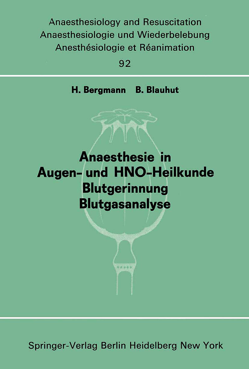 Anaesthesie in Augen- und HNO-Heilkunde Blutgerinnung Blutgasanalyse