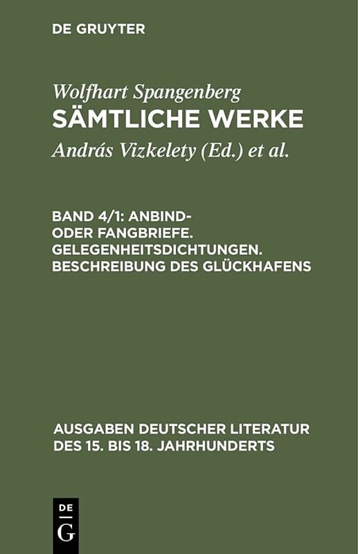 Dieser Titel, "Anbind- oder Fangbriefe. Gelegenheitsdichtungen. Beschreibung des Glückhafens", ist eine wissenschaftliche Publikation, erschienen bei De Gruyter Brill. Ausführliche Beschreibung, Inhaltsverzeichnis und weitere Angaben finden Sie auf der Verlags...