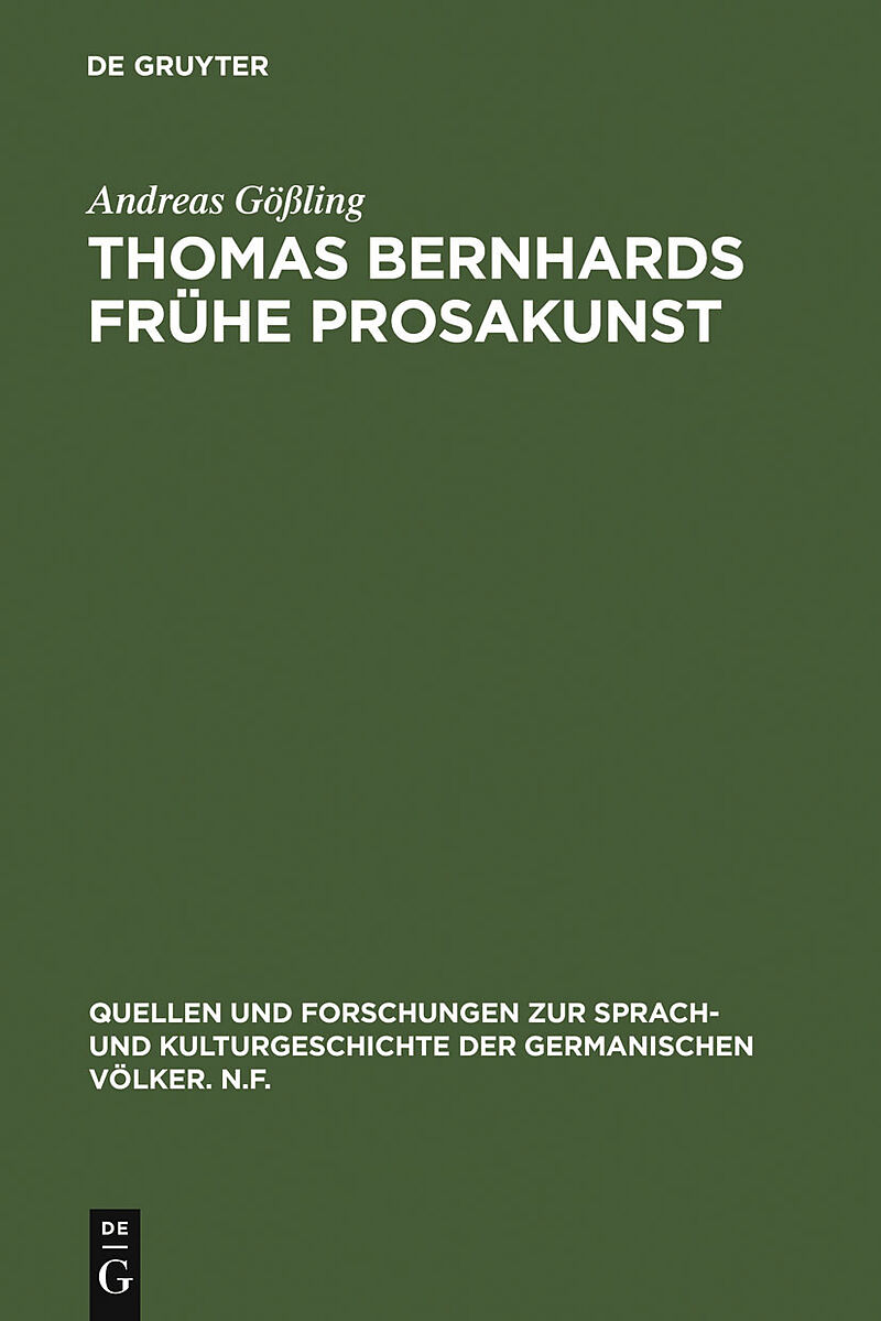 Keine ausführliche Beschreibung für "Thomas Bernhards frühe Prosakunst" verfügbar. Klappentext Keine ausführliche Beschreibung für "Thomas Bernhards frühe Prosakunst" verfügbar. Inhalt I-VI -- Inhaltsverzeichnis -- Einleitung -- Erstes Buch: Frost als Alptrau...