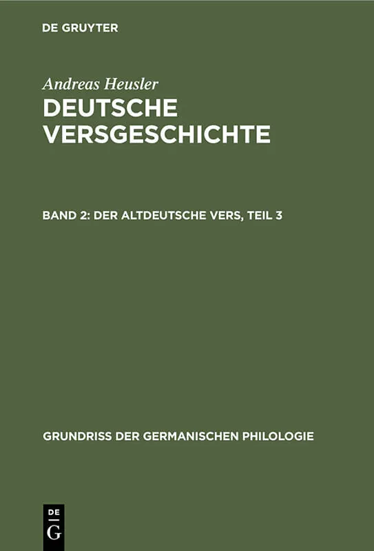 Frontmatter -- INHALT -- TEIL III: Der altdeutsche Vers -- 22. Abschnitt: Überblick über den altdeutschen Zeitraum. Übergangsformen vom Stabreimvers zum Reimvers -- 23. Abschnitt: Der Reim -- 24. Abschnitt: Der Bau des althochdeutschen Reimverses: Das lateinis...