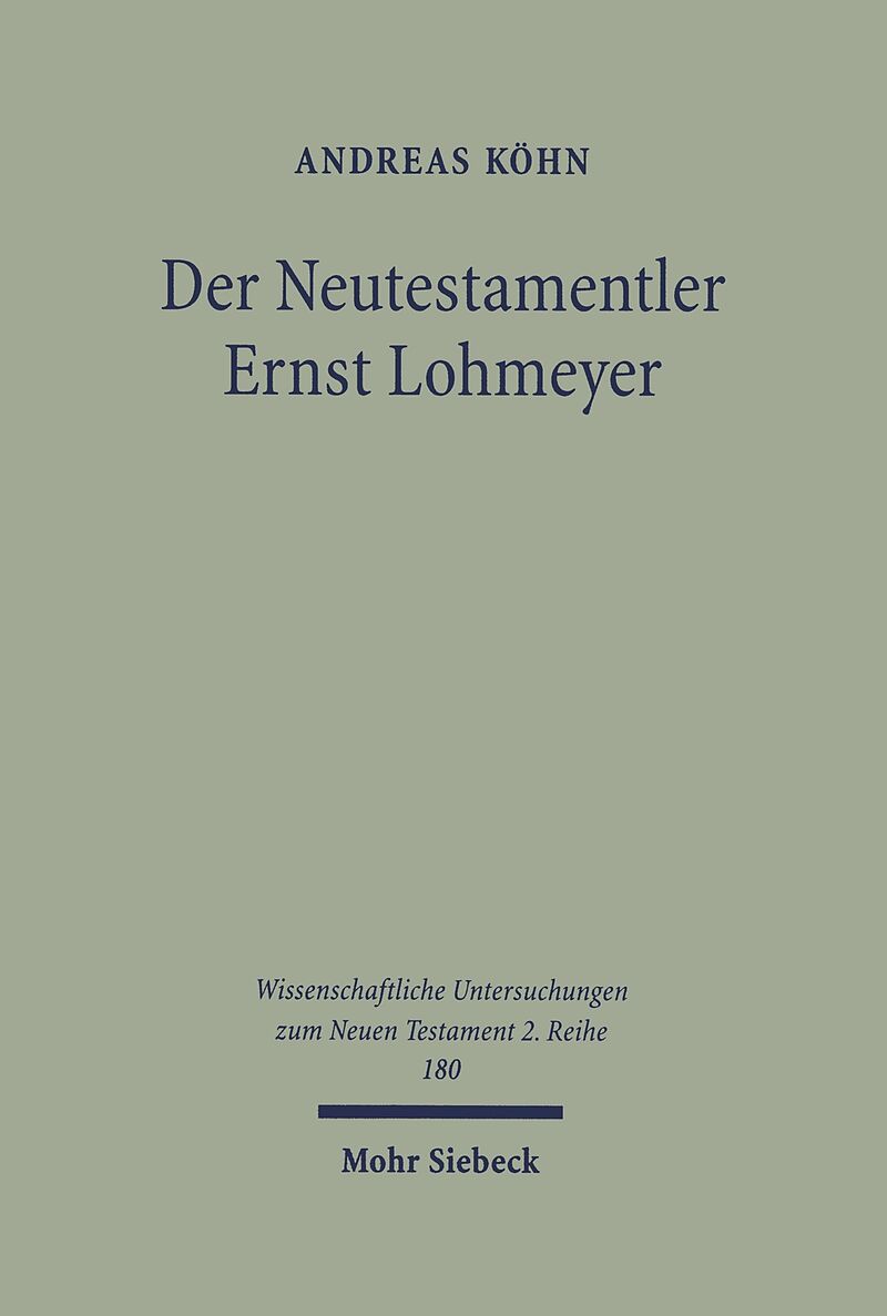 For the first time, Andreas Köhn provides a comprehensive study of the tragic life of Ernst Lohmeyer. This book makes a valuable contribution to understanding Lohmeyer's philosophical background as well as the individual aspects of his life's work in the field...