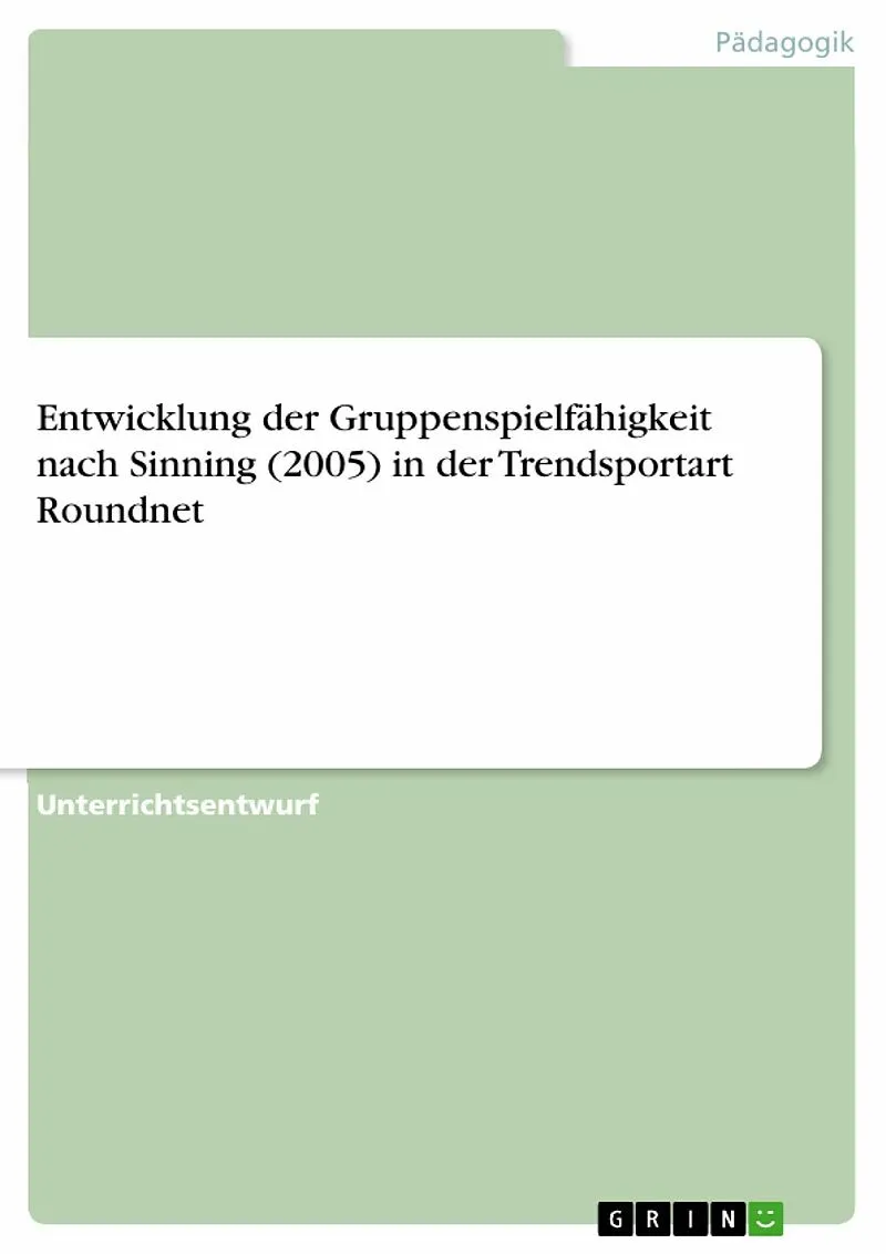 Unterrichtsentwurf aus dem Jahr 2024 im Fachbereich Didaktik - Sport, Sportpädagogik, Note: 0,7, , Veranstaltung: Sport, Sprache: Deutsch, Abstract: Roundnet wird dem Inhaltsfeld "Spielen" im Kerncurriculum zugeordnet und fokussiert soziale Interaktion und Te...