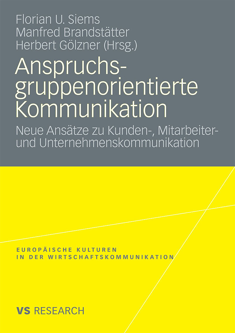 Einleitung: Anspruchsgruppenorientierte Kommunikation Idee und Umsetzung einer integrierten Betrachtung.- Einleitung: Anspruchsgruppenorientierte Kommunikation Idee und Umsetzung einer integrierten Betrachtung.- Kundenkommunikation.- Das Externe Vorschlagswesen Entwicklung eines Kommunikationssystems zur Integration von Kunden in den Innovationsprozess.- Die Folgen der Low- und High-End-Polarisierung auf die Marketingkommunikation der deutschen Automobilindustrie.- The 30-Second-Sale: Snap impressions of a retail sales person influence consumers decision making.- We want you to love our product An English-German Translation Analysis of Consumer Oriented Language on Drink Packaging Texts.- Beeing hopeful oder wie die Biene zum Corporate Weblog kommt: Sprachliche, inhaltliche und gestalterische Mittel der Interaktivität.- Dem Kundenwunsch auf der Spur: Informationsgewinnung in netzbasierter Kommunikation.- Möglichkeiten der visuellen Darstellung von Weinproduktattributen durch piktogramme.- Marketing für tischler Die Rolle der Kommunikation im Marketing-Mix österreichischer handwerksbetriebe.- Marketing und Kommunikation mit Musik: Das Spiel mit den Emotionen.- Mitarbeiterkommunikation.- Kultur(en) der internen unternehmenskommunikation Einfluss und Gestaltungsmöglichkeiten. Ein forschungsprojekt in zwei Institutionen im Gesundheits- und Bildungssektor.- Leitbilder auf dem Prüfstand.- A constructivist approach to communication and projection.- Proxemik in der Teamdynamik Raumsprache diktieren und interpretieren.- Positionierung und Profilierung starker Arbeitgebermarken: Employer Branding als strategisches Ziel anspruchsgruppenorientierter Personalkommunikation.- Spezielle und multiple Anspruchsgruppen.- Stile universitärerWertekommunikation Ein Vergleich im europäischen Wirtschaftsraum.- Modelle der Integrierten Kommunikation.- Kommunikation betrieblicher Entscheidungssituationen Eine empirische Analyse der Auswirkungen von Framing.- Diachroner Wandel von Zielgruppenansprachen veranschaulicht anhand der bildschematischen Konzeptualisierung in Jahresberichten.- Lust auf Perspektivenwechsel Ein Experiment zur Verhaltensänderung.- Einige Überlegungen zu einer Übersetzungstheorie von Tourismuswebsites.- Integrierte Kommunikation in Unternehmen Forschungsstand, empirische Befunde, Bewertungsansatz.- Investor Relations Newsletters Funktion, Aufbau und Sprache.- Virtuelle Unternehmenskommunikation: Die neue EU- Richtlinie über die Ausübung von Aktionärsrechten.- Stakeholderorientierte Informations- und Kommunikationspolitik in Nonprofit-Organisationen Leistungsberichterstattung als Instrument zur strategischen Beziehungsgestaltung.- Country-Branding als Identitätsmetapher.- City-Branding Markenbildung durch Auswahl und Einsatz von Wertprägungen.- Mehr Orientierung durch Orienteering Neue Perspektiven für erfolgreiche Teamkommunikation durch paralleles Lernen auf unterschiedlichen Ebenen..- Schnittstellenkommunikation im Produktentwicklungsprozess als erfolgsrelevanter Faktor Eine Analyse innovationsorientierter deutscher, österreichischer und Schweizer Unternehmen.- Communication matters Netzwerkkonstitution im Entrepreneurship.