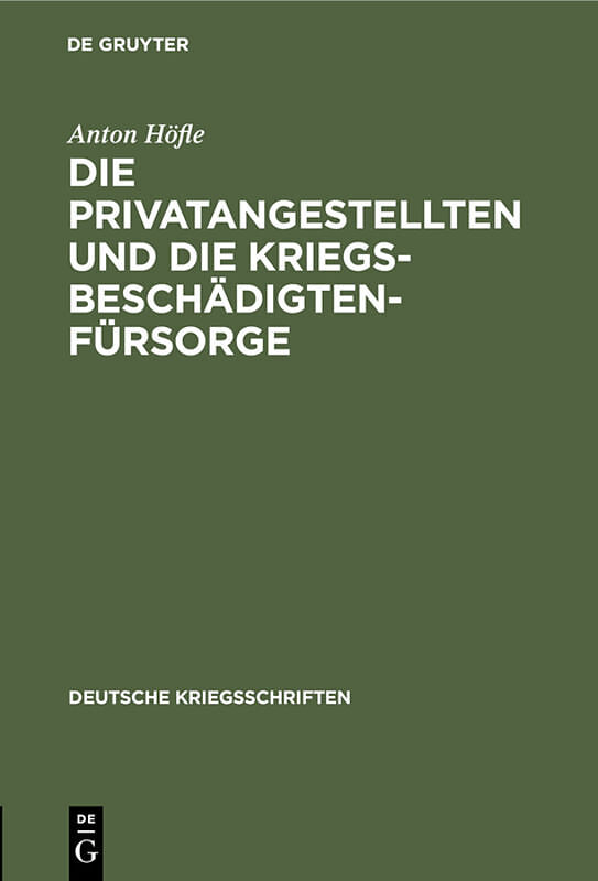 Dieser Titel, "Die Privatangestellten und die Kriegsbeschädigten-Fürsorge", ist eine wissenschaftliche Publikation, erschienen bei De Gruyter Brill. Ausführliche Beschreibung, Inhaltsverzeichnis und weitere Angaben finden Sie auf der Verlagswebsite: https://ww...