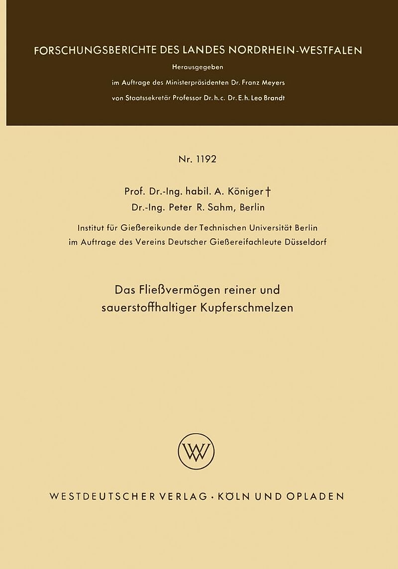 Inhalt 1. Theoretische Vorbemerkung.- 1.1 Detaillierung der Fließeigenschaften der Metalle.- 1.2 Fließvermögen.- 1.3 Formfüllungsvermögen.- 2. Das Fließvermögen im System CuCu2O.- 2.1 Die wichtigsten physikalischen Einflußgrößen.- 2.2 Versuchsdurchführung.- 2....