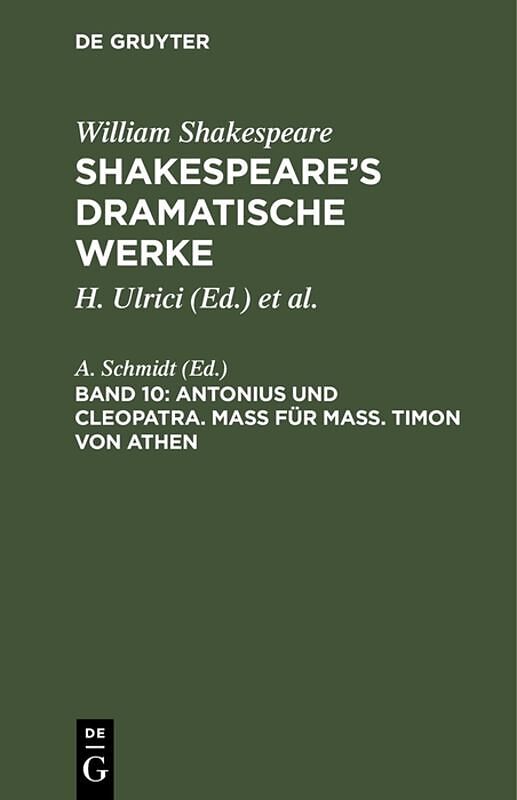 Dieser Titel, "Antonius und Cleopatra. Maß für Maß. Timon von Athen", ist eine wissenschaftliche Publikation, erschienen bei De Gruyter Brill. Ausführliche Beschreibung, Inhaltsverzeichnis und weitere Angaben finden Sie auf der Verlagswebsite: https://www.degr...