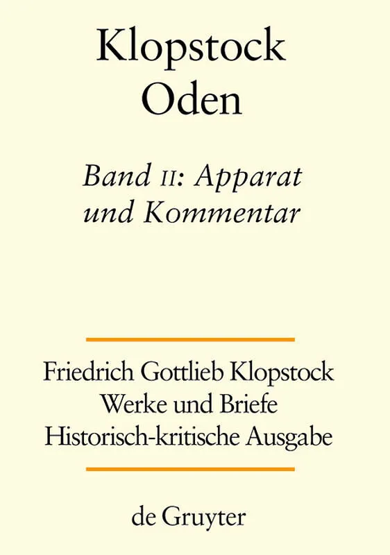 Klopstock's lyrical works are presented in their entirety in the text volume of this new scholarly edition. The two apparatus volumes describe the tradition of the texts and their creation, and offer evidence and commented references to the text. Variants and...