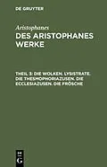 Frontmatter -- Vorrede -- Die Wolken -- Personen -- Einleitung -- Erster Act -- Parabase -- Zweiter Act -- Dritter Act -- Vierter Act -- Fünfter Act -- Cysistrate -- Personen -- Einleitung -- Erster Act -- Parabase -- Zweiter Act -- Dritter Act -- Die Thesmoph...