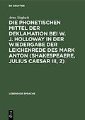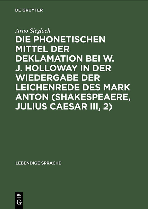 Die phonetischen Mittel der Deklamation bei W. J. Holloway in der Wiedergabe der Leichenrede des Mark Anton (Shakespeaere, Julius Caesar III, 2)