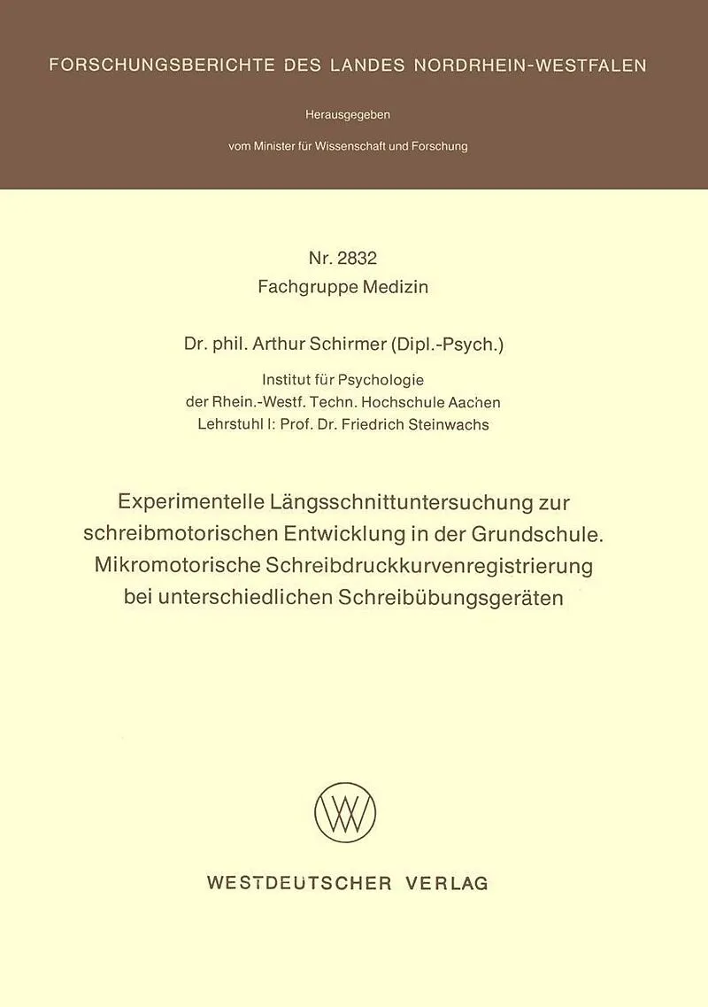 Inhalt 1. Einleitung.- 1.1. Thematik der vorliegenden Arbeit.- 2. Methode.- 2.1 Hypothesen der Arbeit.- 3. Versuchsplan.- 3.1 Die verwendeten Verfahren.- 3.2 Darstellung des Untersuchungsverlaufs.- 3.3 Auswertung.- 4. Ergebnisse.- 4.1 Schreibdruckkriterien der...
