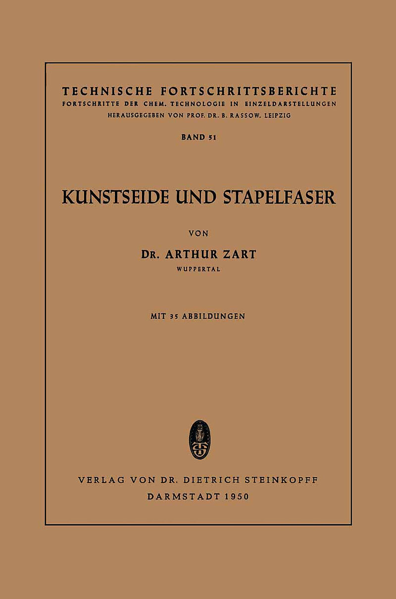 ab Inhalt I. Begriffsbestimmungen.- II. Kunstfasern aus Zellulose.- a) Rohstoff-Zellulose.- b) Viskoseverfahren.- c) Kuprammonverfahren.- d) Azetylzellulosefasern.- III. Fasern aus Eiweiß.- IV. Fasern aus Kunstharzen.- a) Allgemeines und Grundstoffe.- b) Spin...