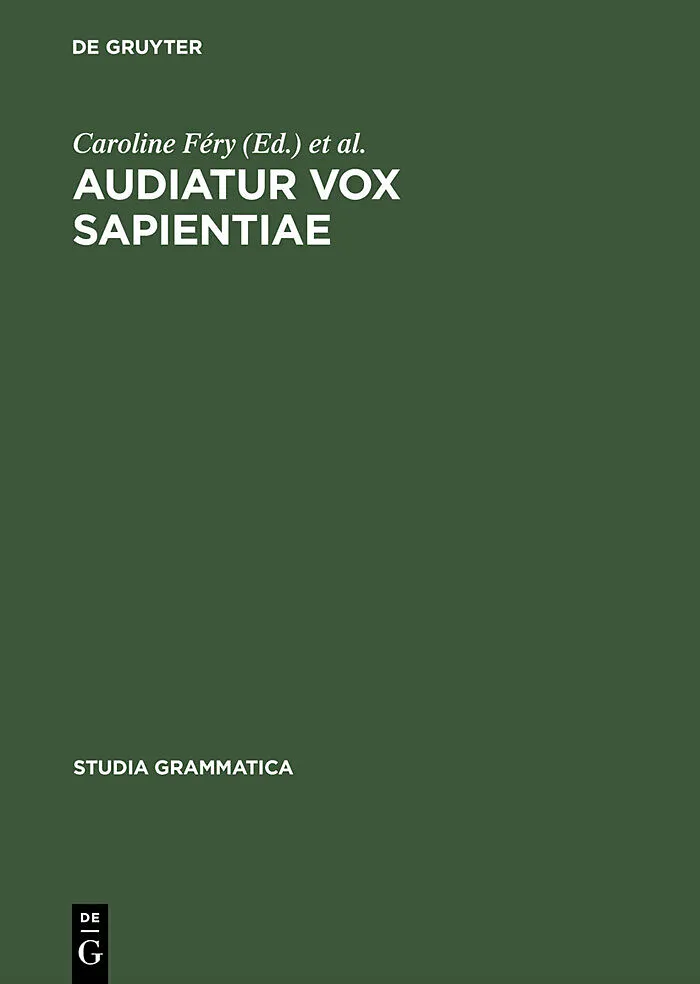 Dieser Titel, "Audiatur Vox Sapientiae", ist eine wissenschaftliche Publikation, erschienen bei De Gruyter Brill. Ausführliche Beschreibung, Inhaltsverzeichnis und weitere Angaben finden Sie auf der Verlagswebsite: https://www.degruyterbrill.com/isbn/978305008...