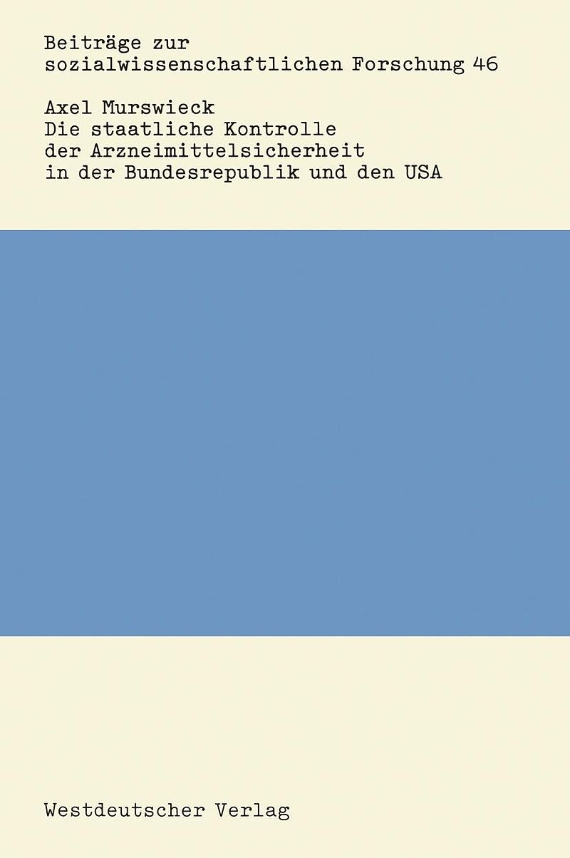 Inhalt A Untersuchungsansatz und Problemstellung.- I. Entwicklung der Forschungsperspektive.- II. Staatliche Regulierung im sozialen Bereich Begriff und Gegenstand.- B Der Vergleich Nationaler Politiken.- I. Problemdimensionen im Politikfeld Arzneimittelsicher...