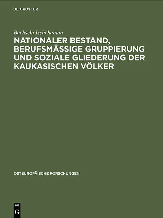 Frontmatter -- Inhaltsverzeichnis -- Vorwort -- I. Kapitel. Bestand, Ausbreitung und Einteilung der kaukasischen Bevölkerung -- II. Kapitel. Berufsmäßige Gruppierung der kaukasischen Hauptvölker auf allen Gebieten des wirtschaftlichen und sozialen Lebens -- II...