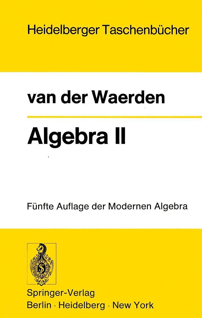 Zwölftes Kapitel. Lineare Algebra.- § 84. Moduln über einem Ring.- § 85. Moduln über euklidische Ringe. Elementarteiler.- § 86. Der Hauptsatz über abelsche Gruppen.- § 87. Darstellungen und Darstellungsmoduln.- § 88. Normalformen für eine Matrix in einem kommutativen Körper.- § 89. Elementarteiler und charakteristische Funktion.- § 90. Quadratische und Hermitesche Formen.- § 91. Antisymmetrische Bilinearformen.- Dreizehntes Kapitel. Algebren.- § 92. Direkte Summen und Durchschnitte.- § 93. Beispiele von Algebren.- § 94. Produkte und verschränkte Produkte.- § 95. Algebren als Gruppen mit Operatoren. Moduln und Darstellungen.- § 96. Das kleine und das große Radikal.- § 97. Das Sternprodukt.- § 98. Ringe mit Minimalbedingung.- § 99. Zweiseitige Zerlegungen und Zentrumszerlegung.- § 100. Einfache und primitive Ringe.- § 101. Der Endomorphismenring einer direkten Summe.- § 102. Struktursätze für halbeinfache und einfache Ringe.- § 103. Das Verhalten der Algebren bei Erweiterung des Grundkörpers.- Vierzehntes Kapitel. Darstellungstheorie der Gruppen und Algebren.- § 104. Problemstellung.- § 105. Darstellung von Algebren.- § 106. Die Darstellungen des Zentrums.- § 107. Spuren und Charaktere.- § 108. Darstellungen endlicher Gruppen.- § 109. Gruppencharaktere.- § 110. Die Darstellungen der symmetrischen Gruppen.- § 111. Halbgruppen von linearen Transformationen.- § 112. Doppelmoduln und Produkte von Algebren.- § 113. Die Zerfällungskörper einer einfachen Algebra.- § 114. Die Brauersche Gruppe. Faktorensysteme.- Fünfzehntes Kapitel. Allgemeine Idealtheorie der kommutativen Ringe.- § 115. Noethersche Ringe.- § 116. Produkte und Quotienten von Idealen.- § 117. Primideale und Primärideale.- § 118. Der allgemeine Zerlegungssatz.- §119. Der erste Eindeutigkeitssatz.- § 120. Isolierte Komponenten und symbolische Potenzen.- § 121. Theorie der teilerfremden Ideale.- § 122. Einartige Ideale.- § 123. Quotientenringe.- § 124. Der Durchschnitt aller Potenzen eines Ideals.- § 125. Die Länge eines Primärideals. Primäridealketten in Noetherschen Ringen.- Sechzehntes Kapitel. Theorie der Polynomideale.- § 126. Algebraische Mannigfaltigkeiten.- § 127. Universalkörper.- § 128. Die Nullstellen eines Primideals.- § 129. Die Dimensionszahl.- § 130. Der Hilbertsche Nullstellensatz. Resultantensysteme für homogene Gleichungen.- § 131. Die Primärideale.- § 132. Der Noethersche Fundamentalsatz.- § 133. Zurückführung der mehrdimensionalen Ideale auf nulldimensionale.- Siebzehntes Kapitel. Ganze algebraische Größen.- § 134. Endliche ?-Moduln.- § 135. Ganze Größen in bezug auf einen Ring.- § 136. Die ganzen Größen eines Körpers.- § 137. Axiomatische Begründung der klassischen Idealtheorie.- § 138. Umkehrung und Ergänzung der Ergebnisse.- § 139. Gebrochene Ideale.- § 140. Idealtheorie beliebiger ganz-abgeschlossener Integritätsbereiche.- Achtzehntes Kapitel. Bewertete Körper.- § 141. Bewertungen.- § 142. Komplette Erweiterungen.- § 143. Die Bewertungen des Körpers der rationalen Zahlen.- § 144. Bewertung von algebraischen Erweiterungskörpern: Kompletter Fall.- § 145. Bewertung von algebraischen Erweiterungskörpern: Allgemeiner Fall.- § 146. Bewertungen von algebraischen Zahlkörpern.- § 147. Bewertungen des rationalen Funktionskörpers ?(x).- § 148. Der Approximationssatz.- Neunzehntes Kapitel. Algebraische Funktionen einer Variablen.- § 149. Reihenentwicklungen nach Ortsuniformisierenden.- § 150. Divisoren und ihre Multipla.- § 151. Das Geschlecht g.- § 152.Vektoren und Kovektoren.- § 153. Differentiale. Der Satz vom Spezialitätsindex.- § 154. Der Riemann-Rochsche Satz.- § 155. Separable Erzeugung von Funktionenkörpern.- § 156. Differentiale und Integrale im klassischen Fall.- § 157. Beweis des Residuensatzes.- Zwanzigstes Kapitel. Topologische Algebra.- § 158. Der Begriff topologischer Raum.- § 159. Umgebungsbasen.- § 160. Stetigkeit. Limites.- § 161. Trennungs- und Abzählbarkeitsaxiome.- § 162. Topologische Gruppen.- § 163. Die Umgebungen der Eins.- § 164. Untergruppen und Faktorgruppen.- § 165. T-Ringe und T-Schiefkörper.- § 166. Gruppenkomplettierung durch Fundamentalfolgen.- § 167. Filter.- § 168. Gruppenkomplettierung durch Cauchy-Filter.- § 169. Topologische Vektorräume.- § 170. Ringkomplettierung.- § 171. Komplettierung von Schiefkörpern.- Namen- und Sachverzeichnis.
