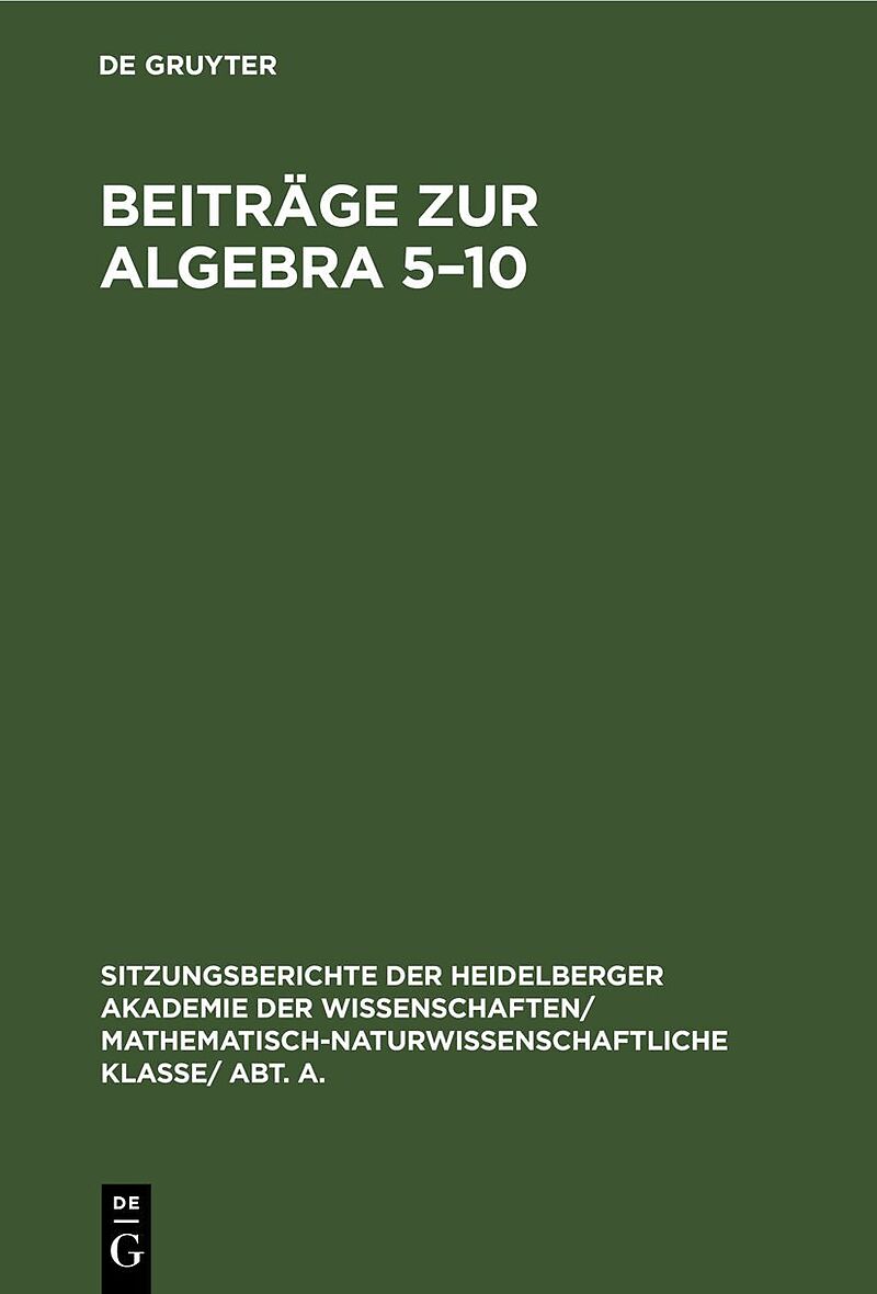 Keine ausführliche Beschreibung für "Beiträge zur Algebra 5-10" verfügbar.