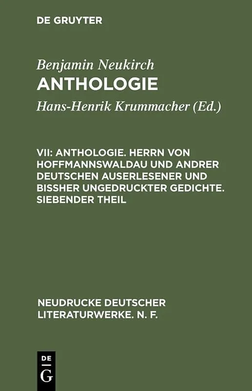 Dieser Titel, "Anthologie. Herrn von Hoffmannswaldau und andrer Deutschen auserlesener und bißher ungedruckter Gedichte. Siebender Theil", ist eine wissenschaftliche Publikation, erschienen bei De Gruyter Brill. Ausführliche Beschreibung, Inhaltsverzeichnis un...