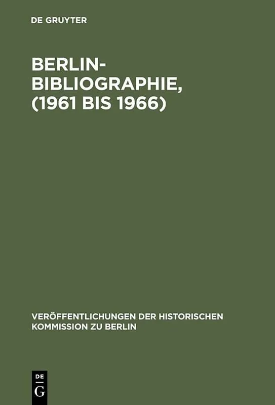 Dieser Titel, "Berlin-Bibliographie, (1961 bis 1966)", ist eine wissenschaftliche Publikation, erschienen bei De Gruyter Brill. Ausführliche Beschreibung, Inhaltsverzeichnis und weitere Angaben finden Sie auf der Verlagswebsite: https://www.degruyterbrill.com/...