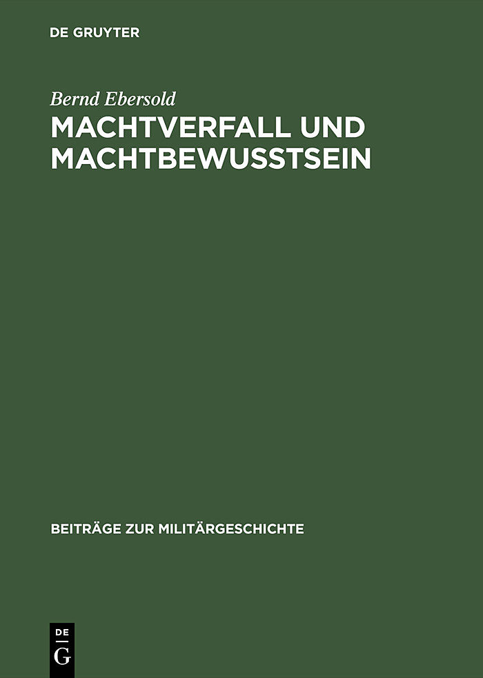 Dieser Titel, "Machtverfall und Machtbewusstsein", ist eine wissenschaftliche Publikation, erschienen bei De Gruyter Brill. Ausführliche Beschreibung, Inhaltsverzeichnis und weitere Angaben finden Sie auf der Verlagswebsite: https://www.degruyterbrill.com/isbn...