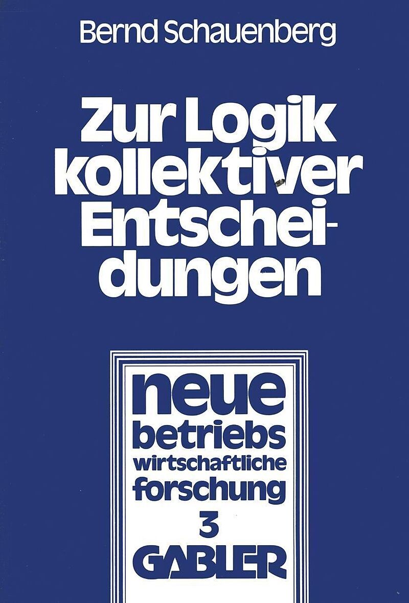 Inhalt I. Einleitung.- II. Entscheidungslogische Grundlagen und Grundkonzepte.- A. Binäre Relationen.- B. Präferenzordnungen.- C. Wahl mengen und Wahlfunktionen.- III. Grundlagen der Theorie kollektiver Entscheidungen.- A. Vorbemerkung.- B. Einige allgemeine B...