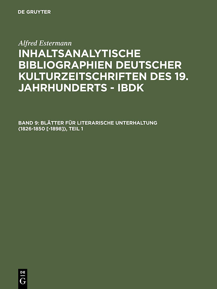 Frontmatter -- Einleitung -- Blätter für literarische Unterhaltung (1826-1850 [-1898]) A-E -- Blätter für literarische Unterhaltung -- A -- B -- C -- D -- E -- Blätter für literarische Unterhaltung (1826-1850 [-1898]) F-J -- Frontmatter -- F -- G -- -- I -- J...