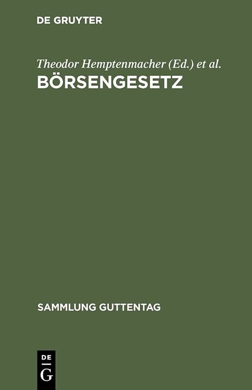Keine ausführliche Beschreibung für "Börsengesetz" verfügbar. Inhalt Frontmatter -- Vorwort -- Inhaltsverzeichnis -- Abkürzungen -- Überblick -- Börsengesetz -- I. Allgemeine Bestimmungen über die Börsen und deren Organe -- II. Feststellung des Börsenpreises ...