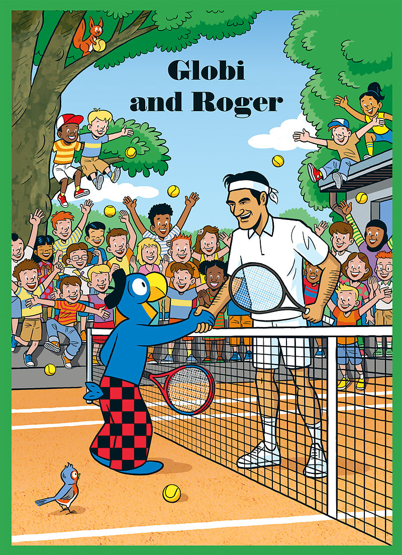 Globi walks through the forest and almost stumbles over a tennis ball. How did it get here? Looking around the corner, he discovers ... Roger Federer in the middle of his family having a picnic and a happy get-together. The two of them fall around each other's...