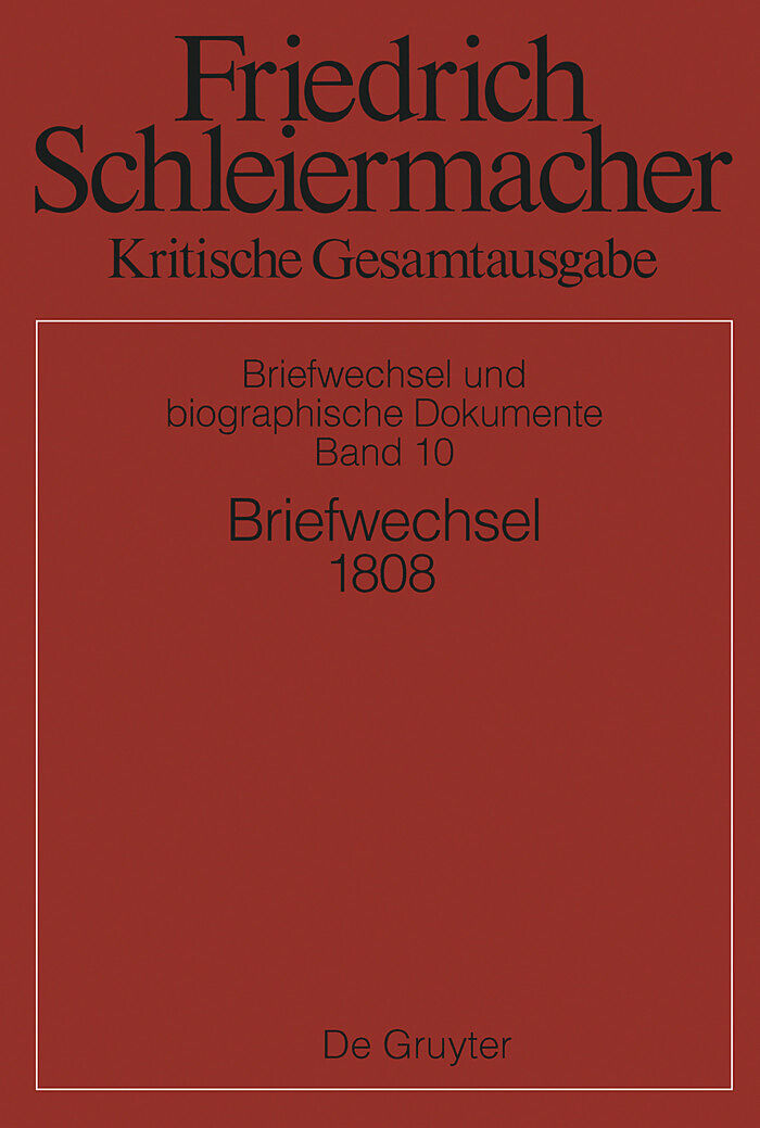 Friedrich Daniel Ernst Schleiermacher (17681834) engaged in extensive correspondence. This volume contains the letters from 1808, which include, among others, the famous betrothal letters from the period of his engagement along with Schleiermacher's correspon...