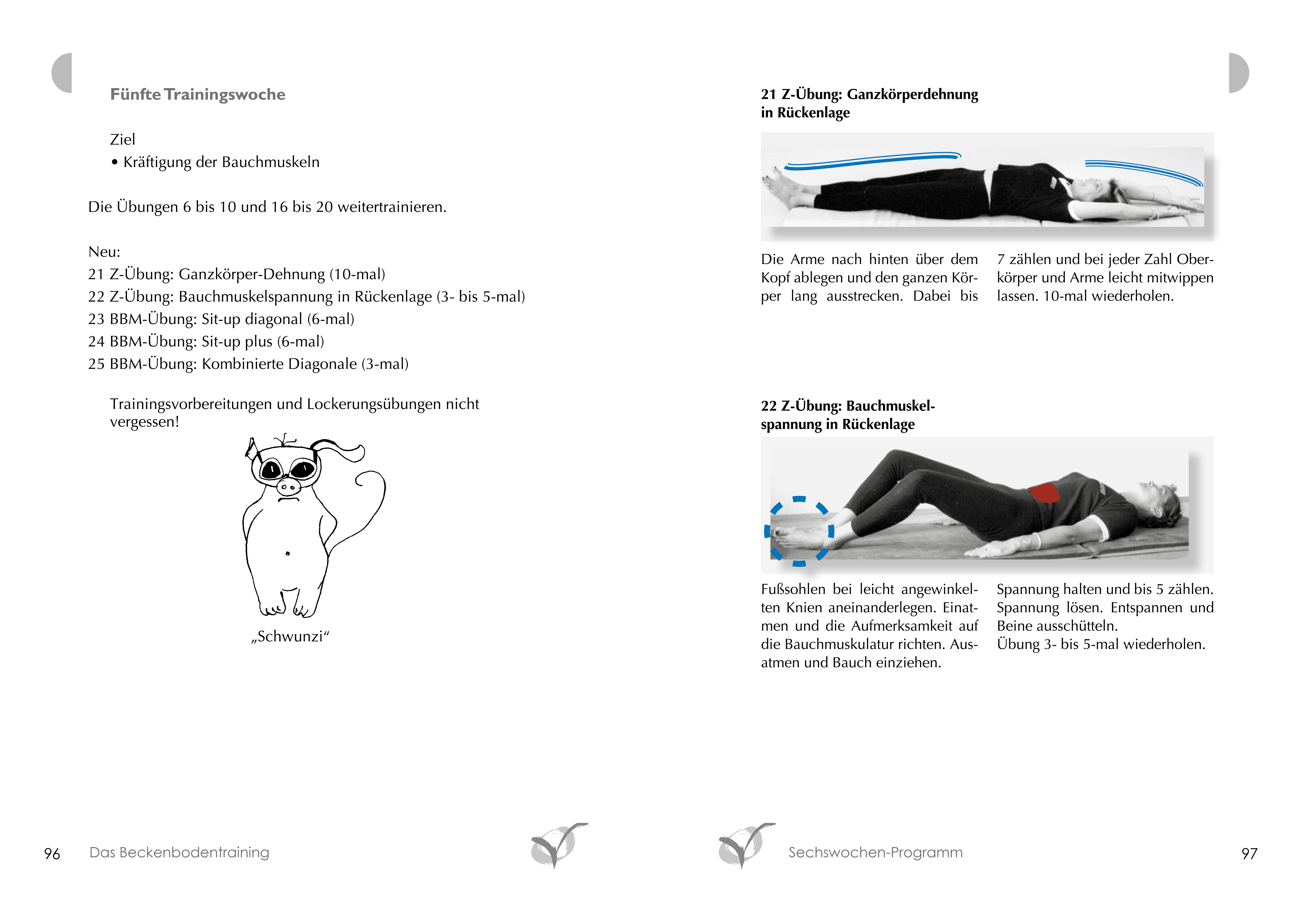 Inhalt Einführung Teil eins Ursachen einer Beckenbodenschwäche Ererbte Bindegewebsschwäche Übergewicht, Fettsucht Körperliche Überforderung Schwangerschaft, Geburt und Geburtsverletzungen Gebärmutterentfernung Hormonmangel im Klimakterium und Alter Hormonelle Veränderungen und ihre Folgen Hormontherapie bei Wechseljahresbeschwerden Selbsthilfe bei klimakterischen Beschwerden Teil zwei Folgen einer Beckenbodenschwäche Die Hauptformen weiblicher Harninkontinenz und ihre Diagnose Ganzheitlicher Therapieansatz, Selbstanwendungen und Hilfsmittel Haut- und Körperpflege Stimulierende Übungen für zwischendurch (S-Übungen) Blasen- und Toilettentraining Inkontinenz-Hilfen Ambulante Kuren Akupunktur Kinesiologische Möglichkeiten Senkungszustände der Unterleibsorgane Selbsthilfe bei leichter Senkung Psychisch und körperlich schonendes Verhalten Geeignete Kleidung und richtiges Schuhwerk Sport und Bewegung Ernährung und Verdauung Operative Korrekturen bei starker Senkung und Inkontinenz Teil drei Das Beckenbodentraining Die drei Muskelschichten des Beckenbodens Die äußere Muskelschicht und ihre willentliche Beeinflussbarkeit Die mittlere Muskelschicht mit dem Blasenschließmuskel Die innere Muskelschicht und die Körperhaltung Die Muskulatur von Bauch, Oberschenkeln und Gesäß wahrnehmen Trainingsvorbereitung Worauf Sie achten sollten Lockerungsübung zum Aufwärmen Sechswochen-Programm Erste Trainingswoche Zweite Trainingswoche Dritte Trainingswoche Vierte Trainingswoche Fünfte Trainingswoche Sechste Trainingswoche Tägliches Kurztraining mit acht Übungen Gymnastische Zusatzübungen Übersicht Trainingsprogramm Entspannungsmethoden und ihre Wirksamkeit Meditative Atmungstechnik Autogenes Training Progressive Muskelrelaxation nach Jacobson (PMR) Yoga Hilfreiche Adressen Die Autorin
