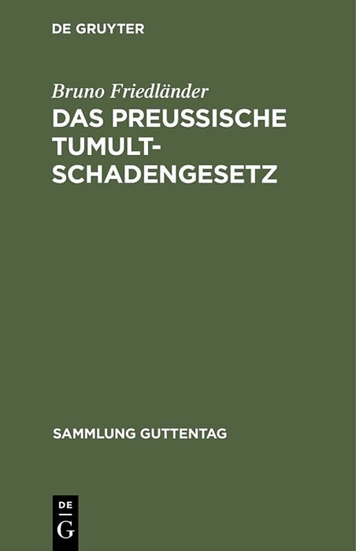 Frontmatter -- Vorwort -- Schrifttum -- Gesetz, betreffend die Verpflichtung der Gemeinden zum Ersatz des bei öffentlichen Aufläufen verursachten Schadens Vom 11. März 1850 (GS. S. 199) -- Dur Geschichte des Gesetzes -- Gesetz, betreffend die Verpflichtung der...