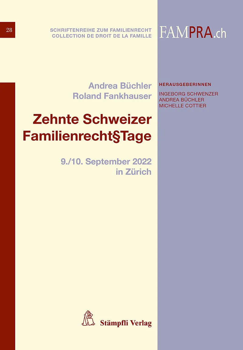 Am 9./10. September 2022 fanden in Zürich die Zehnten Schweizer Familienrecht§Tage statt. In der vorliegenden Publikation sind zwei Plenumsreferate sowie die Berichte und Ergebnisse aus acht Arbeitskreisen abgedruckt. Thema der Referate waren die Anliegen des ...